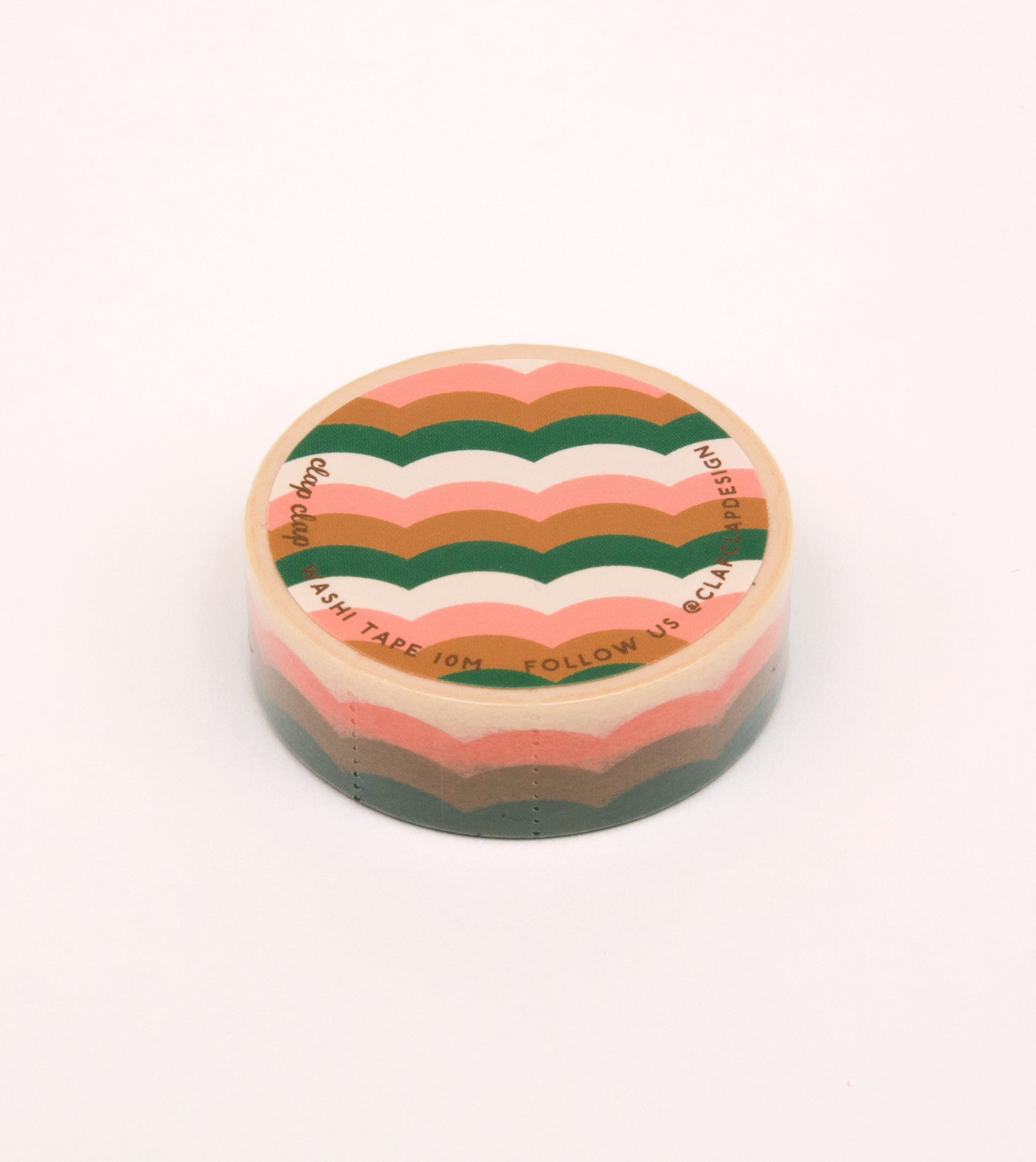 Clap Clap's originalåÊWashi tape featuringåÊa scallop pattern will brighten things up. Decorate a gift or add aåÊunique touch to a letter, planner, bullet journal, home decor and much more with this tape!åÊWrite on it with your favorite pen, pencil or marker.åÊInitially re-positionable on most surfaces.åÊ