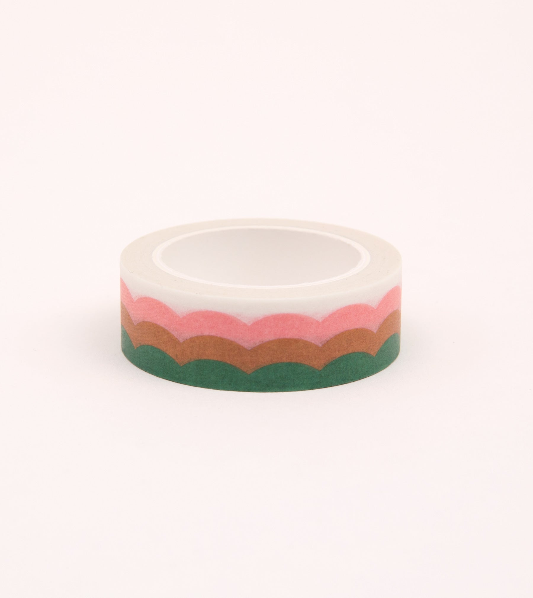 Scallop Pattern Washi Tape - Green and Pink - 15mm